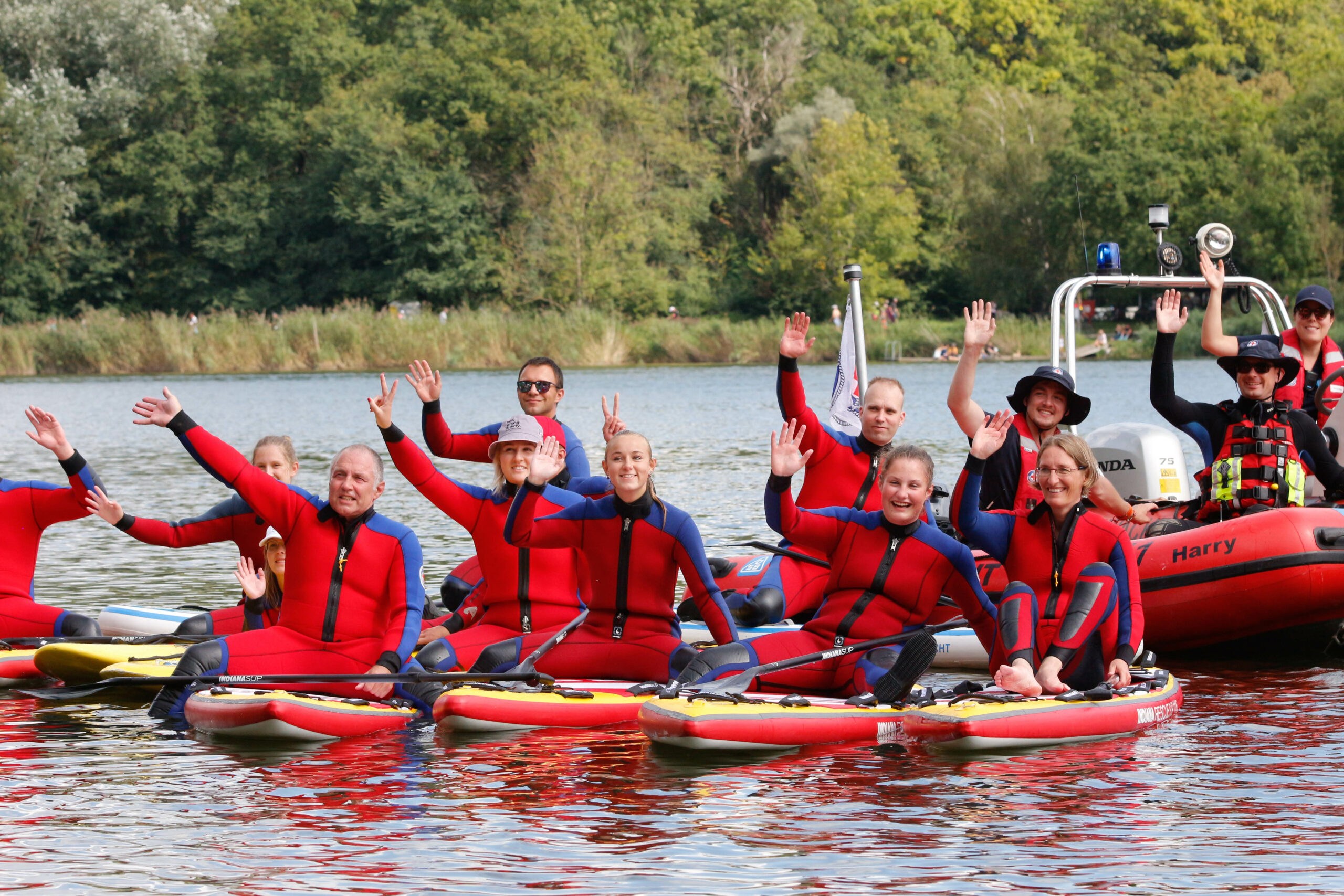 Die Gaimersheimer Wasserretter konnten im Rahmen der Absicherung zusätzlich zu dem bereits im Jahr 2019 angeschafften Vorgängermodell erstmalig ihre erst vor kurzem angeschafften 5 neuen Rescue-SUP-Boards zum Einsatz bringen. Zwei der neuen Boards sind eine Spende der EDEKA Südbayern Handels Stiftung & Co. KG.