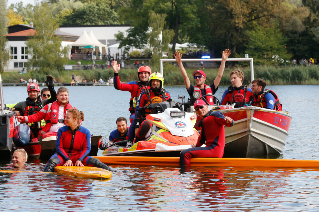 Für eine etwaige Unterwassersuche standen auf den Booten insgesamt 6 Einsatztaucher zur Verfügung – diese mussten glücklicherweise nicht als Taucher eingreifen. Jedoch wurden durch die Bootstrupps 12 Schwimmer in Sicherheit gebracht, denen der ungewohnte Neoprenanzug oder schlichtweg schlechte körperliche Verfassung zu schaffen machte. Zwei Teilnehmer mussten notärztlich versorgt werden.