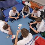 Nach der Hallen-Übernachtung mit über 100 Personen stand am zweiten Tag die Erste-Hilfe-Praxis auf dem Stundenplan. Die Erstversorgung von Wunden, richtiges Absetzen des Notrufs, Herstellung der Seitenlage und viele andere Dinge mussten in Sekundenschnelle demonstriert werden. Je nach Fallbeispiel und Mannschaftszusammensetzung zeigten sich Stärken und Schwächen und so konnte man erkennen, welche Themen in der Ausbildung noch vertieft und geübt werden müssen.